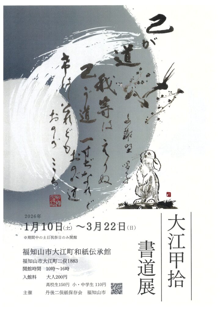 大江甲拾書道展 2026年1月5日 最終更新日時 : 2026年1月5日 kamioni-ooe 1月10日(土)より、大江町二俣の和紙伝承館にて書道展が開催されます。 詳細はチラシ画像をご確認ください。 Follow me!